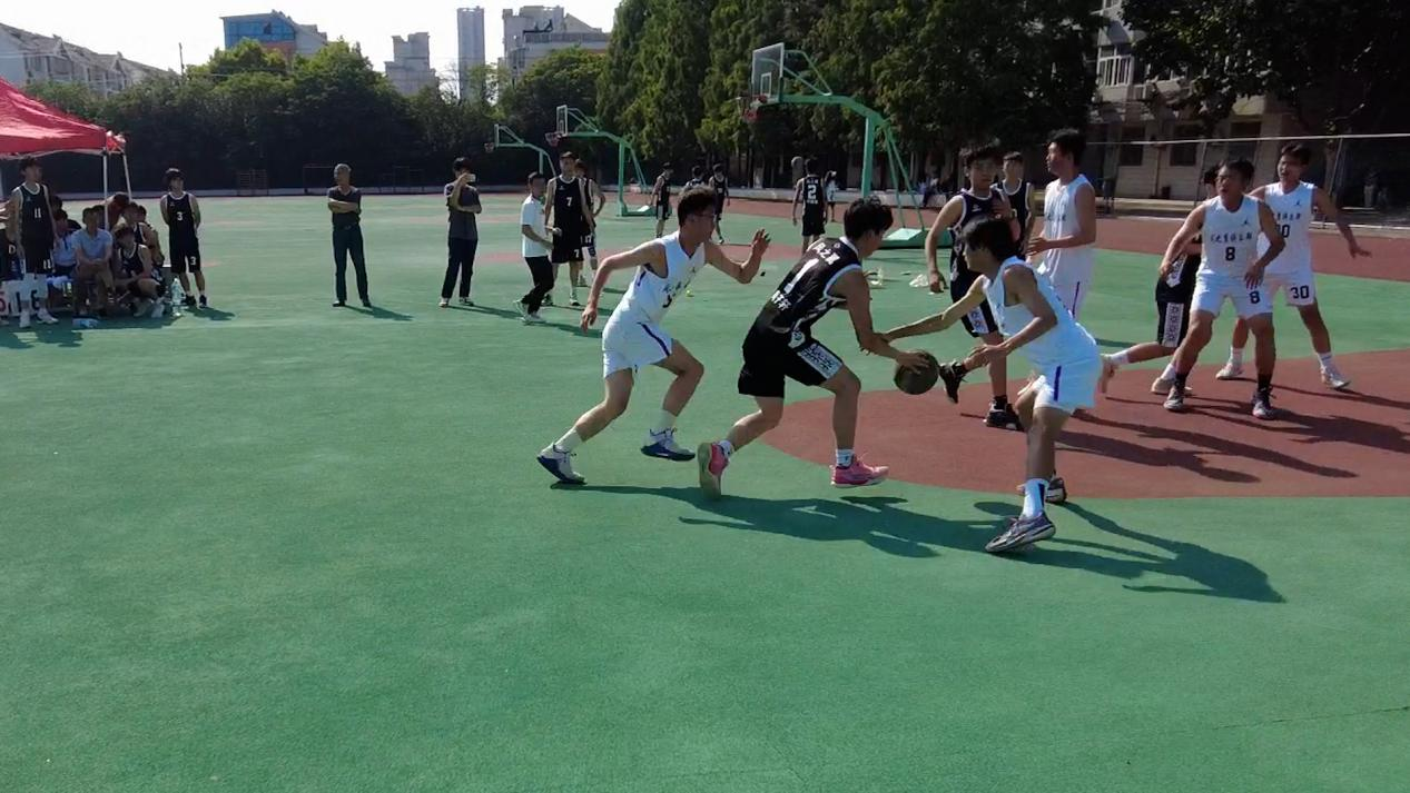 比賽分主、客兩場(chǎng)進(jìn)行,首場(chǎng)比賽于2023年6月1日在拖龍山校區(qū)籃球場(chǎng)進(jìn)行。本次比賽采用4節(jié)制,每節(jié)比賽時(shí)間10分鐘,每節(jié)間歇1分鐘,每節(jié)可暫停1次,特別規(guī)定:第1、2節(jié)比賽人員不能重復(fù)上場(chǎng),3、4節(jié)無(wú)限制。隨著一聲哨響,比賽正式開(kāi)始;雙方隊(duì)員立刻展開(kāi)了防守和進(jìn)攻;賽場(chǎng)上,大家都激情高漲,你爭(zhēng)我?jiàn)Z,展開(kāi)了一輪又一輪的投籃、防守。拖龍山“風(fēng)之翼”隊(duì)在1米98的35號(hào)球員的加盟下,利用身高優(yōu)勢(shì),迅速把比分拉開(kāi);可楚河“風(fēng)之翼”隊(duì)也不甘示弱,利用速度和外線(xiàn)優(yōu)勢(shì)緊咬比分。你來(lái)我往,進(jìn)攻、防守、暫停、罰球,再加上場(chǎng)下同學(xué)們的助威、吶喊,可真有職業(yè)比賽氣勢(shì)。最終楚河“風(fēng)之翼”隊(duì)利用外線(xiàn)優(yōu)勢(shì)以32:28贏下了第一場(chǎng)比賽。