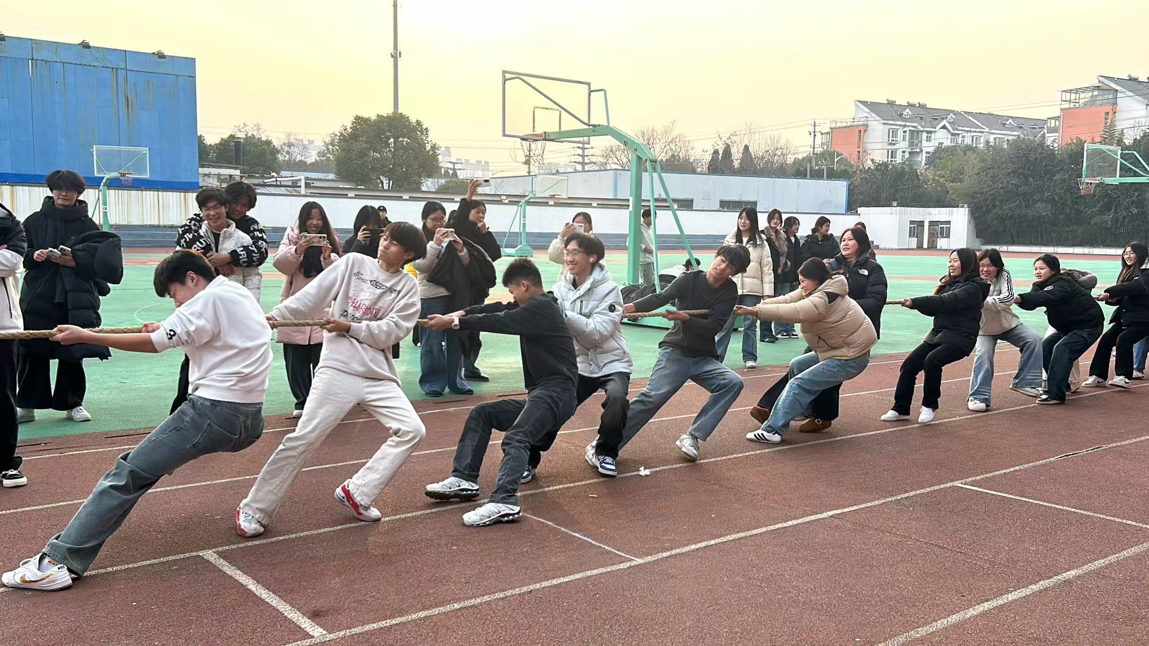20251210日的校園田徑場,建筑工程與藝術設計學院的拔河繩,牽起了更多的青春躍動。25室內(nèi)2、23造價124室內(nèi)2、25造價1等班級的同學,以繩為橋,在拉力的交織里,織就了最鮮活的同儕之誼。