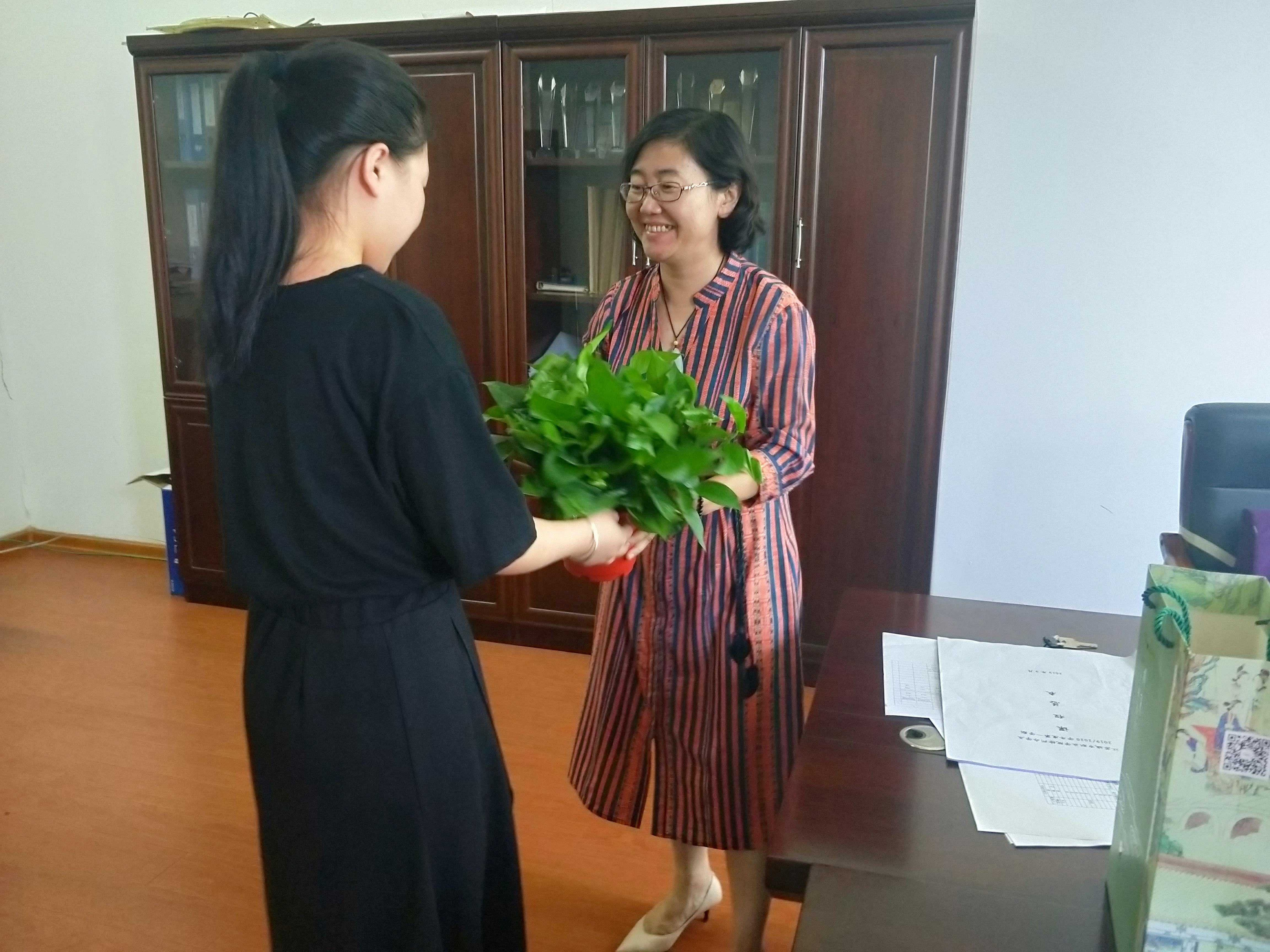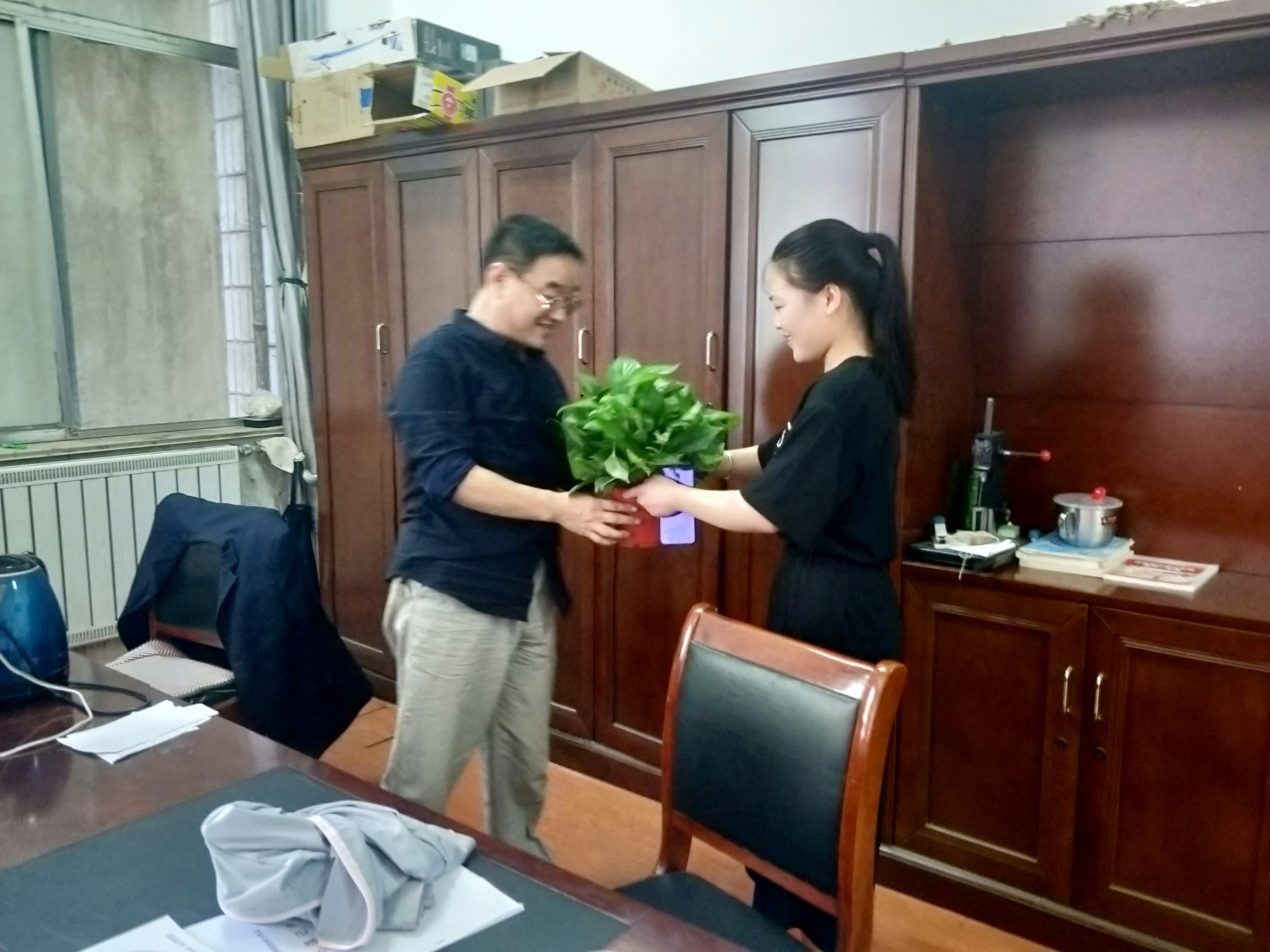 9月10日,是一年一度的教師節(jié),為表敬意,經(jīng)貿(mào)學(xué)院志愿者負(fù)責(zé)人代表學(xué)院全體學(xué)生祝老師們教師節(jié)快樂(lè),并給每個(gè)辦公室送去了盆栽。