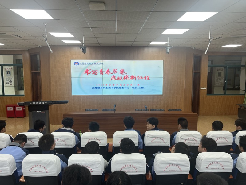 9月19日下午,江蘇聯(lián)合職業(yè)技術(shù)學(xué)院2025級新生“開學(xué)第一課”隆重開講。學(xué)工處組織學(xué)生在康養(yǎng)實(shí)訓(xùn)樓321室集中觀看了這場實(shí)時(shí)直播。同學(xué)們共同聆聽了學(xué)院黨委書記、院長王偉主講的“書寫青春答卷 啟航嶄新征程”開學(xué)第一課,上了一堂別開生面的入學(xué)教育課。