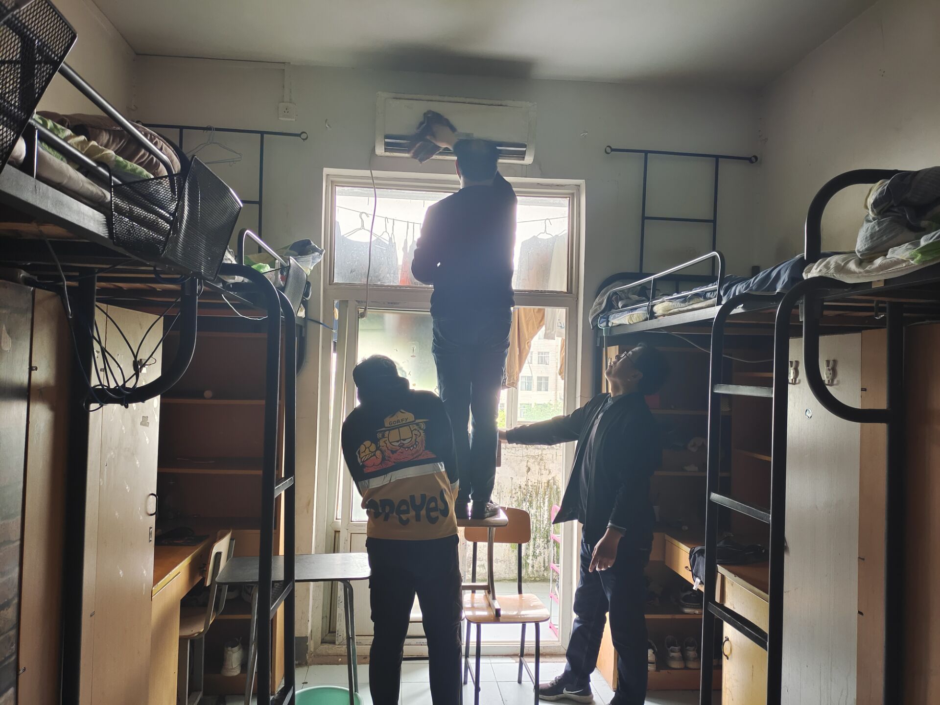 為深入開(kāi)展黨史學(xué)習(xí)教育活動(dòng),做好實(shí)踐轉(zhuǎn)化,圍繞共建和諧校園,切實(shí)解決學(xué)生關(guān)心的實(shí)際問(wèn)題,密切師生之間的關(guān)系,信電學(xué)院黨支部經(jīng)過(guò)到宿舍走訪(fǎng),了解到學(xué)生宿舍的空調(diào)從安裝后已有多年沒(méi)有進(jìn)行過(guò)濾網(wǎng)清洗,夏季即將來(lái)臨,為提高空調(diào)的使用效果,信電學(xué)院黨支部利用教師黨員機(jī)電專(zhuān)業(yè)的特長(zhǎng),于4月23日下午組織黨員深入學(xué)生宿舍開(kāi)展志愿者活動(dòng),為楚河校區(qū)信電學(xué)院25間學(xué)生學(xué)生宿舍進(jìn)行空調(diào)維護(hù)、清洗濾網(wǎng)、維修門(mén)鎖等為學(xué)生辦實(shí)事活動(dòng),老師為學(xué)生服務(wù),受到了學(xué)生的歡迎。