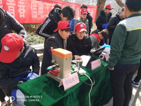 在今天的學(xué)雷鋒活動(dòng)中,我院學(xué)生開展的“配鑰匙、免費(fèi)照片沖洗和封塑、超聲波洗眼鏡和計(jì)算機(jī)系統(tǒng)維護(hù)”等項(xiàng)目受到全校師生歡迎,學(xué)生和老師積極參與,現(xiàn)場氣氛熱烈?;顒?dòng)期間,袁惠副校長到活動(dòng)現(xiàn)場,詢問志愿者活動(dòng)開展的情況并鼓勵(lì)學(xué)生大力弘揚(yáng)雷鋒精神,積極開展志愿者活動(dòng),袁校長及經(jīng)貿(mào)學(xué)院許書記等領(lǐng)導(dǎo)和老師也熱情參與了免費(fèi)照片沖洗和封塑等項(xiàng)目。除校園主干道開展的學(xué)鋒項(xiàng)目外,還有一組由有入黨積極分子組成的義務(wù)服務(wù)隊(duì)在校園公共區(qū)域開展衛(wèi)生打掃活動(dòng)也同時(shí)開展。