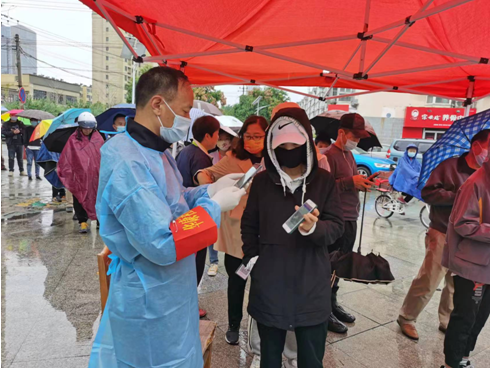 疫情就是命令,党员就是先锋。10月4日,机关第五党支部党员刘传峰利用休息时间报名成为一名疫情防控志愿者,冒雨参加环城办事处华康社区疫情防控工作。