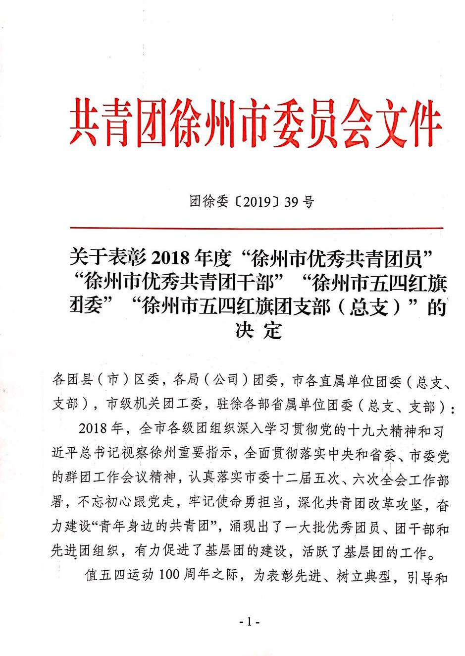 徐州開放大學(xué)建筑工程與藝術(shù)設(shè)計(jì)學(xué)院團(tuán)總支榮獲2018年度“徐州市五四紅旗團(tuán)支部(總支)”