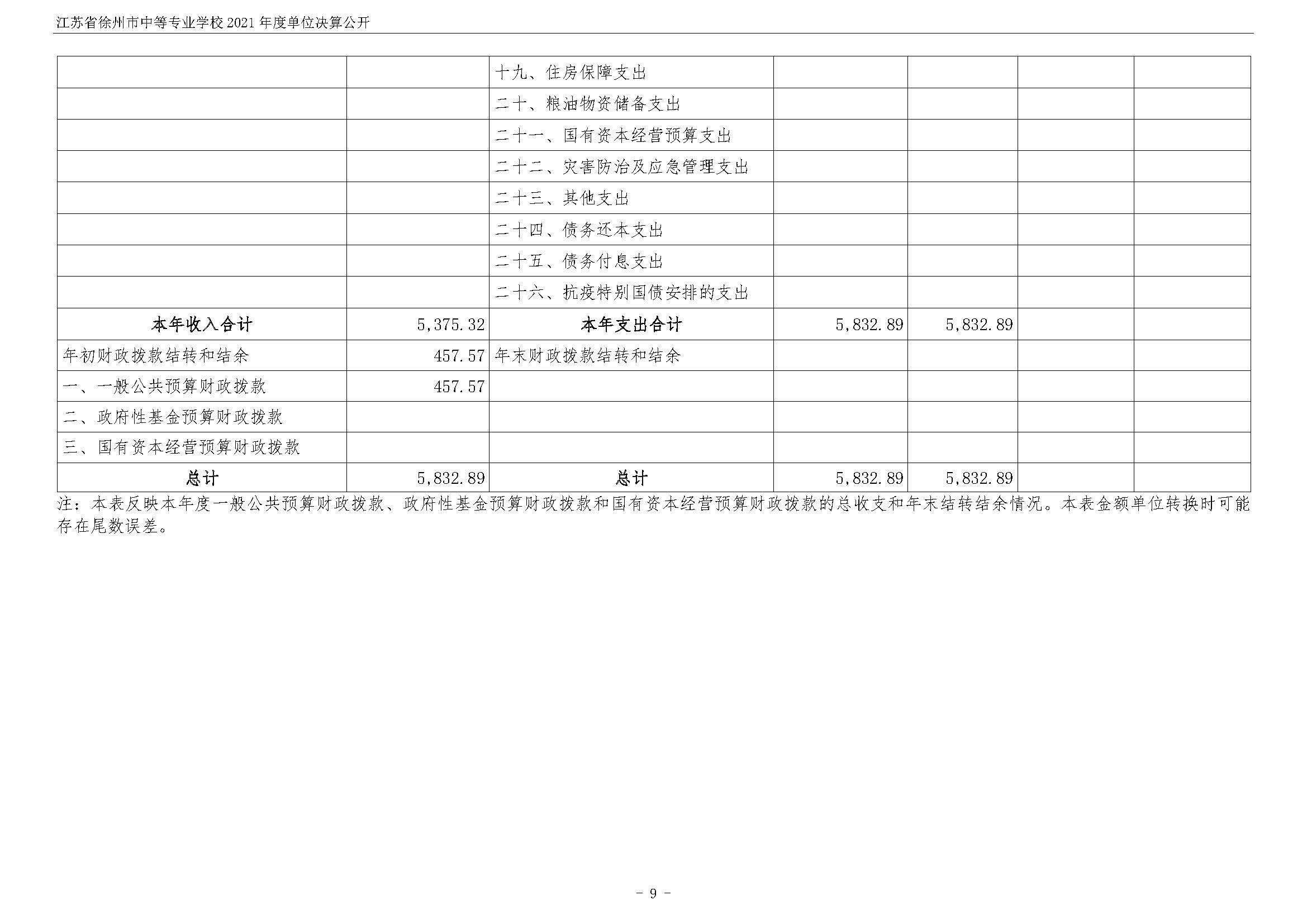 江蘇省徐州市中等專(zhuān)業(yè)學(xué)校2021年度單位決算公開(kāi)