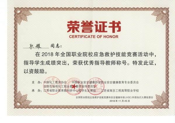 耿耀應(yīng)急救護(hù)大賽榮譽(yù)證書